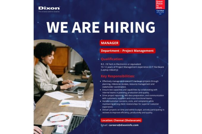 Position: Customer Account Manager (CAM)Location: Bengaluru, Karnataka, IndiaCompany: Tata ElectronicsType: Full time Tata Electronics is hiring a Customer Account Manager to lead key...