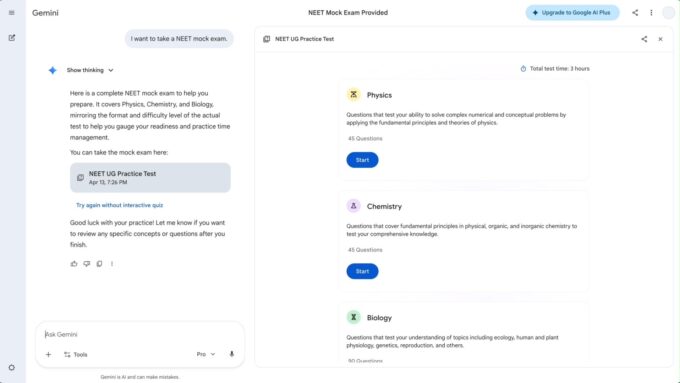 ByRaunak YadavApril 14, 2026Gemini NEET UG Practice Tests Expand Exam Preparation Tools Google has introduced NEET UG practice tests in its Gemini platform, expanding its exam...