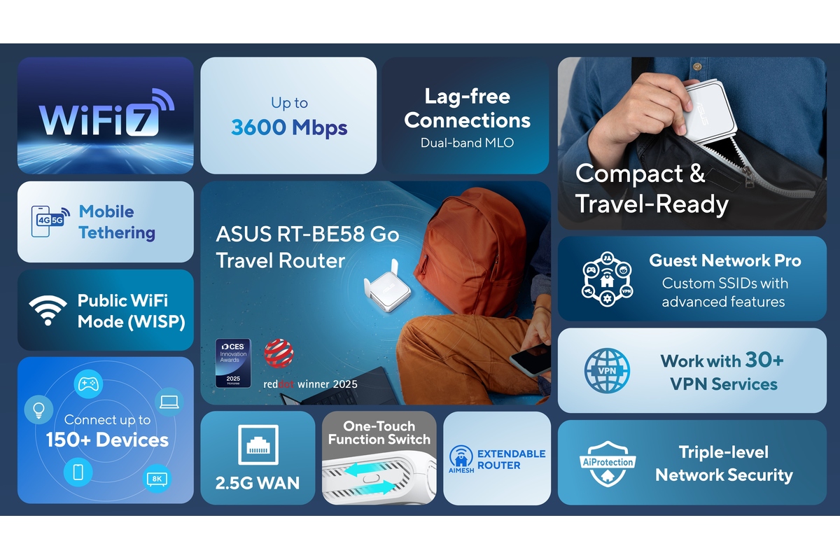 ASUS has launched the RT-BE58 Go, a portable WiFi 7 router designed for people who need strong and secure internet on the go. It supports WiFi speeds up to 3600Mbps and uses features like Multi-Link Operation and 4K QAM for smoother connections. The router’s compact size makes it suitable for travel, small apartments or hybrid work setups.