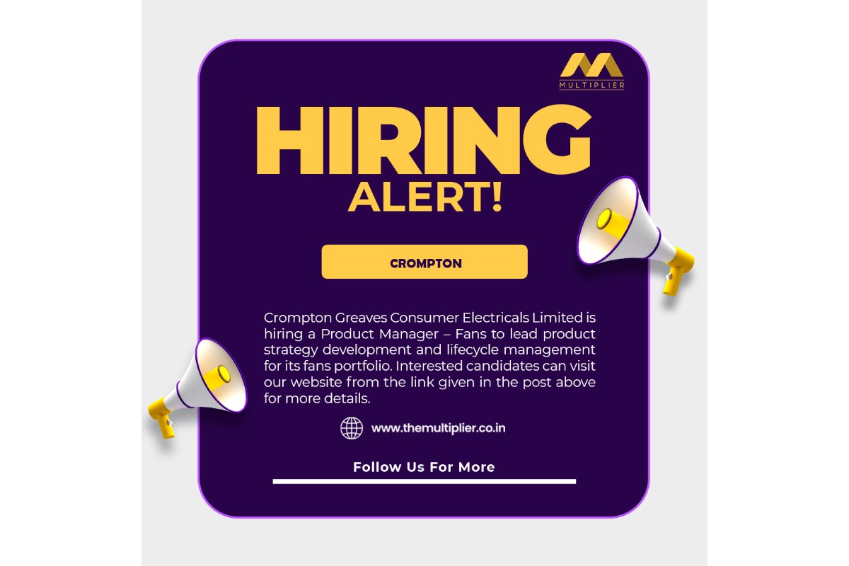 Crompton Greaves Consumer Electricals Limited is hiring a Product Manager – Fans to lead product strategy development and lifecycle management for its fans portfolio. The role sits at the intersection of technology customer needs and business outcomes.