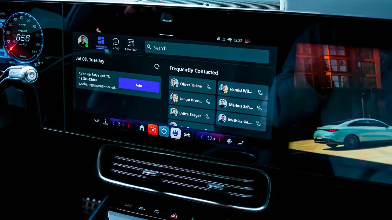 The upgraded Teams app allows drivers to use the car’s in-built camera during meetings while driving, with safety measures in place to prevent distraction such as disabling content sharing on the screen. Features like a calendar-linked dashboard, quick contact access, voice-to-text input and chat functionality aim to make remote collaboration more accessible from within the vehicle.