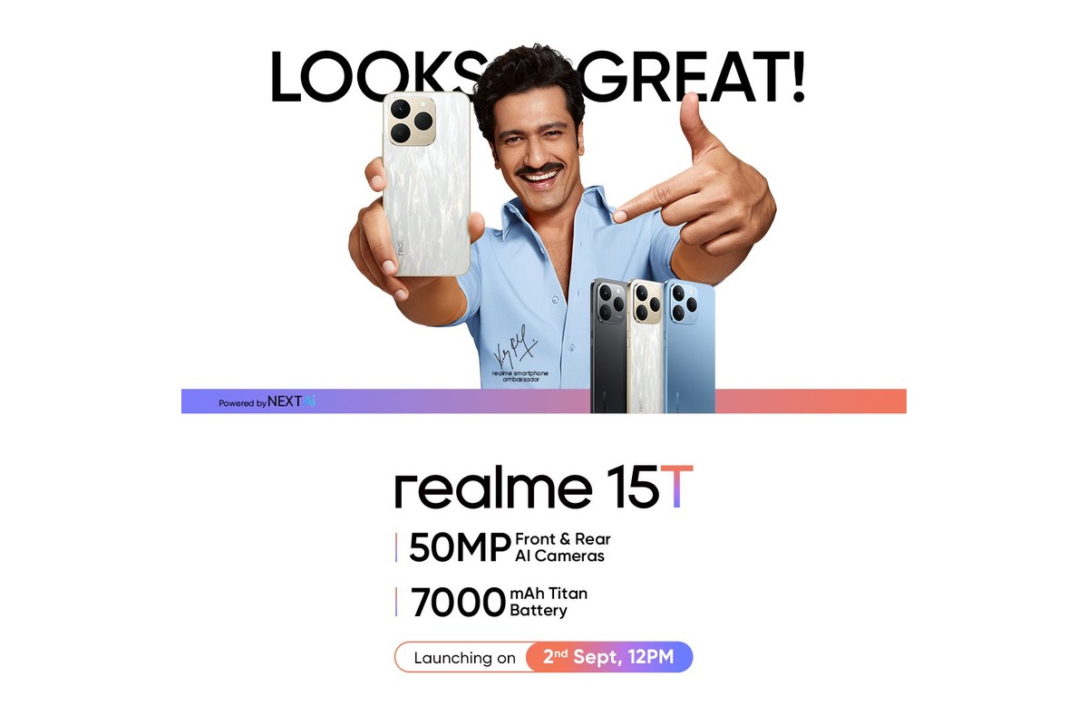 Realme has announced the launch of its 15T smartphone in India, set for September 2. The device will be part of the Realme 15 series and aims to offer features like a 7,000mAh battery, which is designed to last through extended periods of usage and supports reverse charging and fast charging for convenience. The phone is equipped with the MediaTek Dimensity 6400 Max processor and runs on Realme UI 6 based on Android 15. Realme promises three major OS updates and four years of security patches for this model.