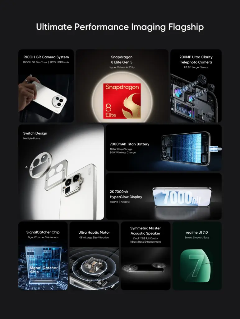 Realme GT 8 Pro is now available in India. The device comes with the Qualcomm Snapdragon 8 Elite Gen 5 chipset. It features a 6.79-inch flexible AMOLED display with QHD+ resolution (1440 × 3136) and a 144 Hz refresh rate. On the front is a 32 MP selfie camera. The rear camera setup includes a 50 MP main sensor, a 50 MP ultra-wide sensor and a 200 MP periscope telephoto lens. The phone packs a 7,000 mAh battery and supports 120 W wired charging and 50 W wireless charging. It is offered in two colour variants: Diary White and Urban Blue.