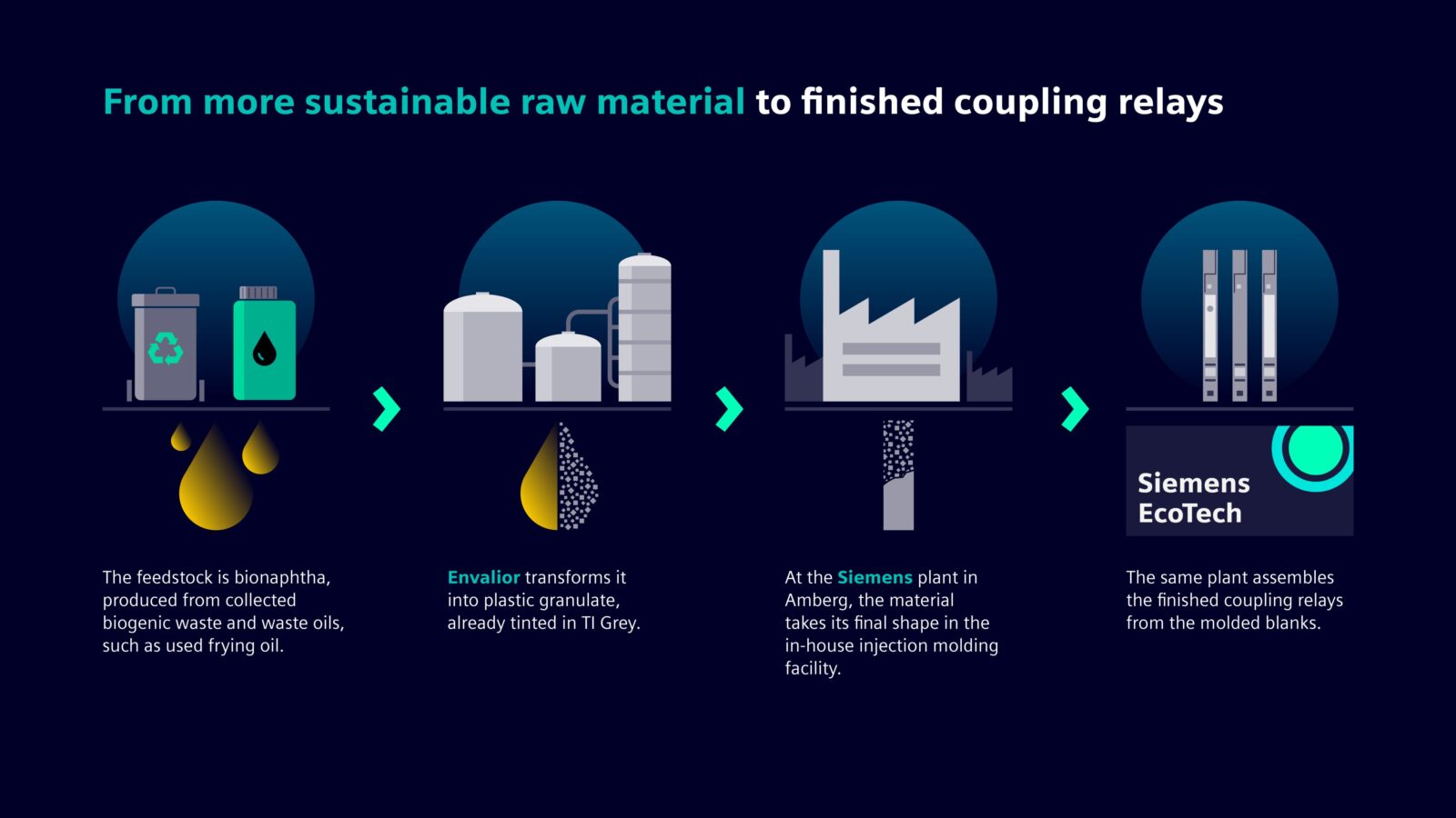 Siemens Smart Infrastructure has launched its new SIRIUS 3RQ4 coupling relays, developed in collaboration with Envalior using a bio-based plastic made from waste cooking oil. The housing material, Akulon® K225-KS B-MB, consists of 70% bio-based content and is halogen-free, flame-retardant, and highly durable. This partnership reflects a move toward more sustainable electrical components, using materials that reduce waste and support circular manufacturing.