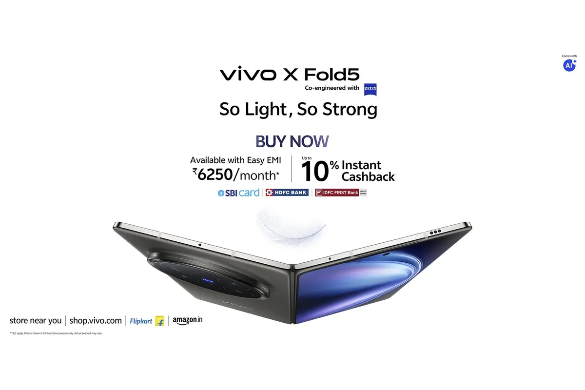 vivo has launched its new foldable phone, the X Fold5, in India. It comes with a 6000mAh battery, which is the largest in any foldable phone in the country. The phone supports 80W wired and 40W wireless charging.